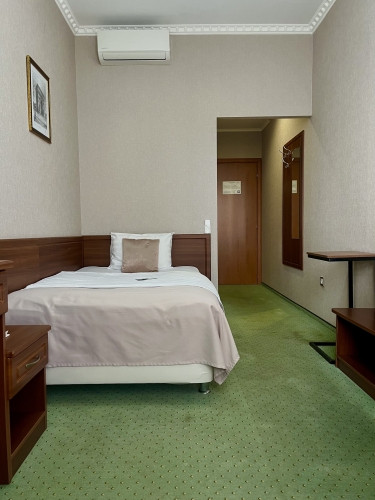 Этот уютный номер эконом-класса, выполненный в классическом стиле и нежных пастельных тонах, предлагает вам все необходимое для приятного пребывания. В номере установлена удобная полутораспальная кровать с ортопедическим матрасом, обеспечивающая здоровый и крепкий сон.