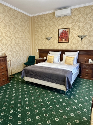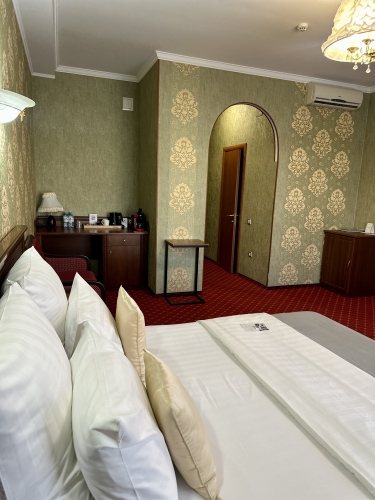 Номер категории «Сюит» — идеальное сочетание элегантности и уюта, созданное для тех, кто ценит истинный комфорт и изысканный стиль.