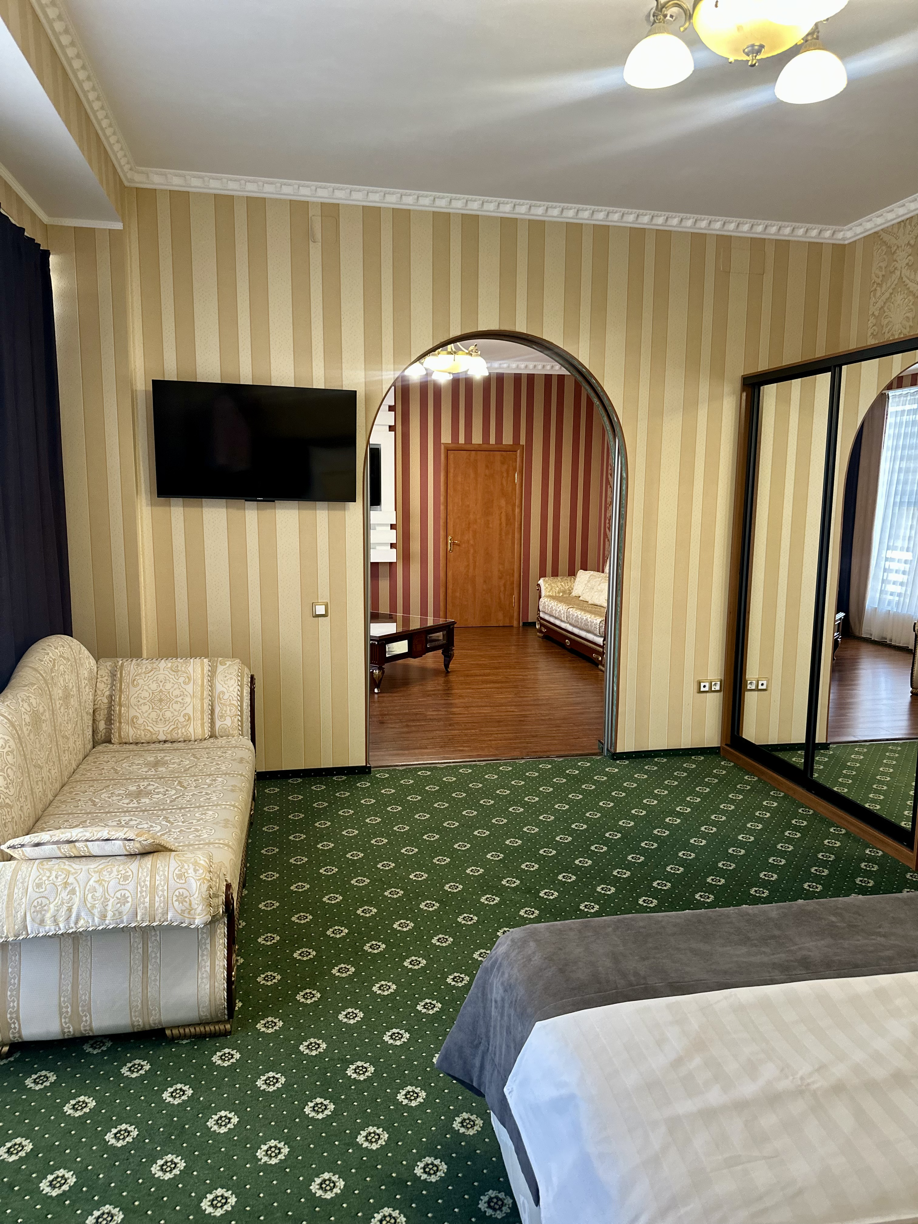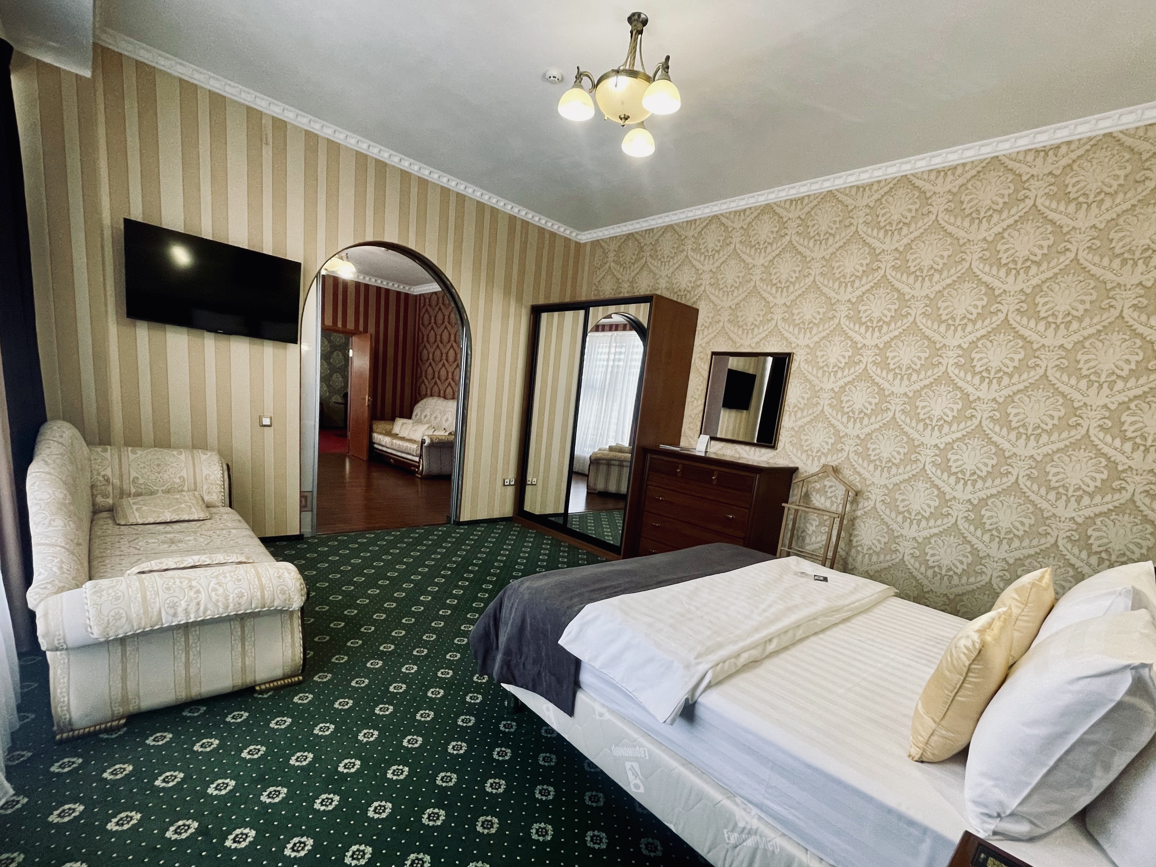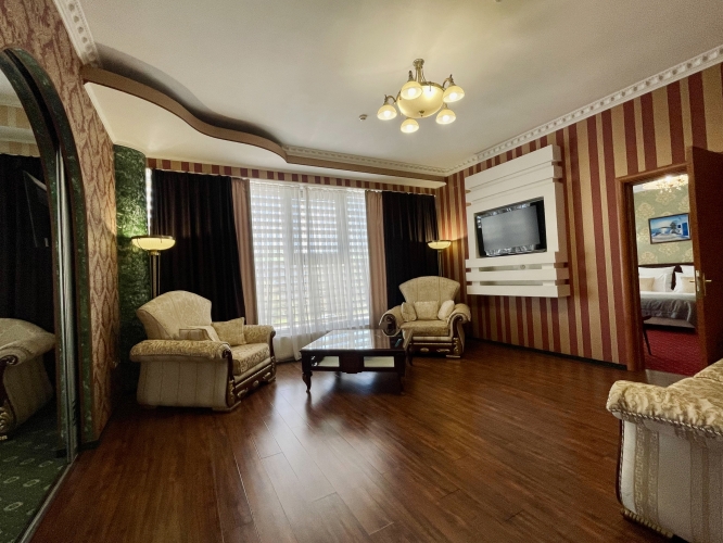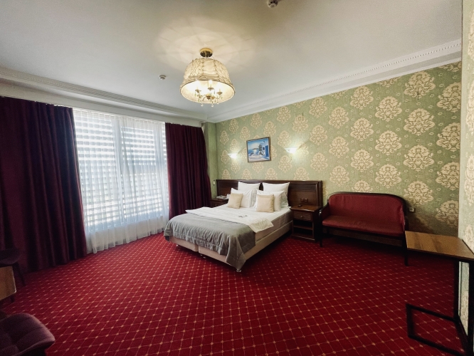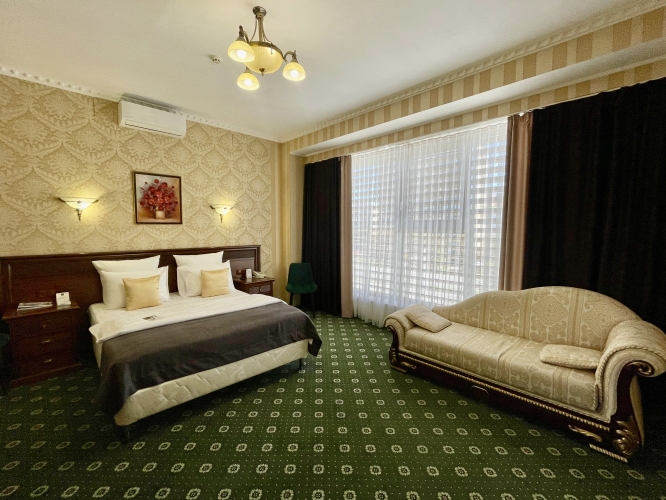Номер категории «Сюит» — идеальное сочетание элегантности и уюта, созданное для тех, кто ценит истинный комфорт и изысканный стиль.